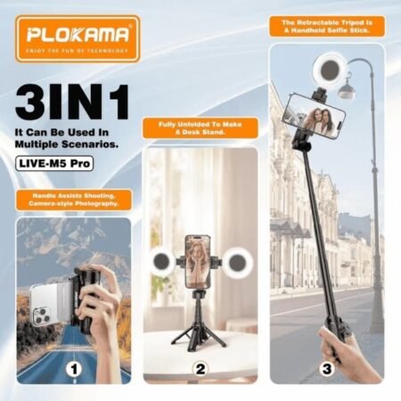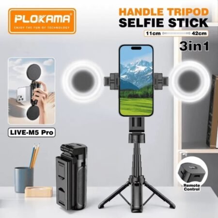 PLOKAMA LIVE-M5 Pro 3-in-1 Handle Mini Tripod & Selfie Stick